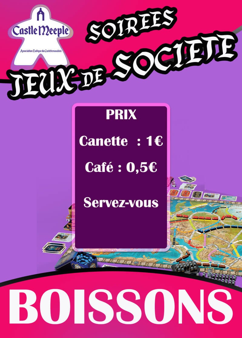 Castle Meeple vous propose maintenant pendant les soirées jeux la vente de soda et café pour le bonheur de nos joueur(e)s